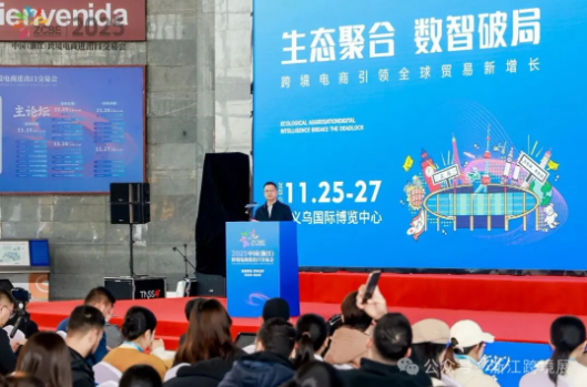 展会同期的全球跨境电商生态大会成为首日亮点。在启动仪式上,义乌市人民政府党组成员、副市长邵春洪在致
