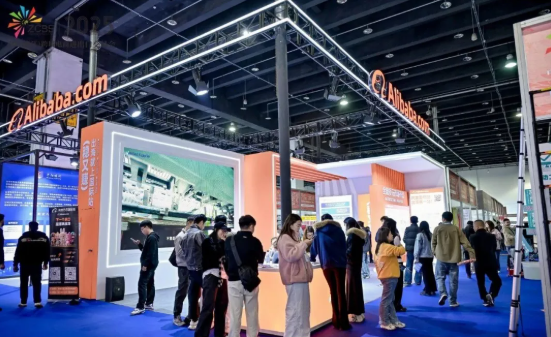 B1馆让出海“只需要跑一次”。现场汇聚了阿里巴巴国际站、速卖通等旗舰平台,并整合了从金融支付、