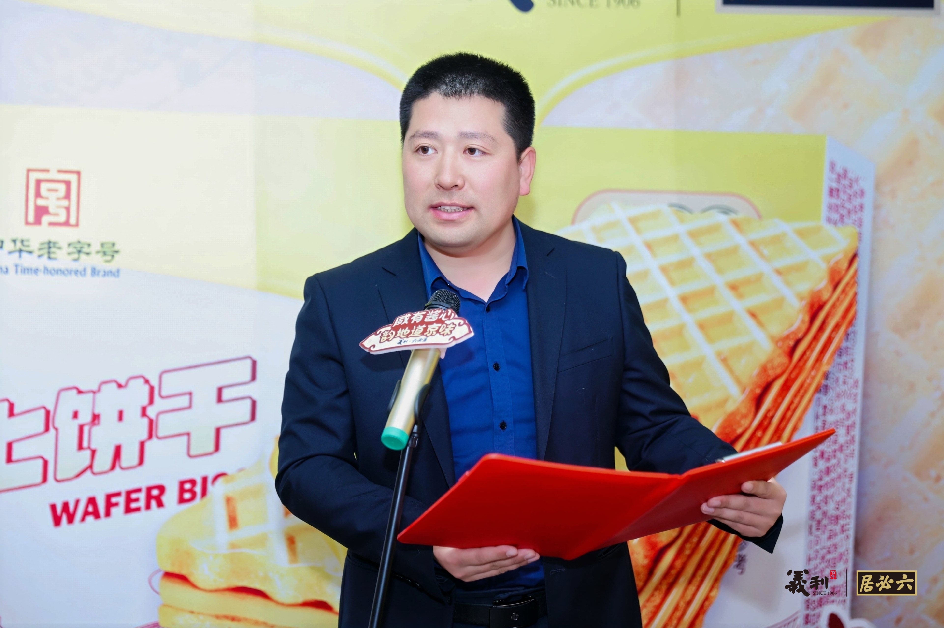 活动环节中,北京义利食品有限公司党总支书记沈庆伟,党总支副书记、总经理张旭升,北京六必居食品有限公司总经理俞江富等领导以及义利渠道伙伴共同出席现场,见证“义利×六必居二八酱味麻酱威化饼干”的隆重上市。