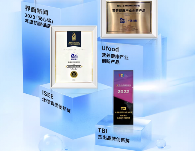 凭借过硬的产品力与清晰的理念定位,奶酪博士小圆奶酪先后斩获TBI杰出品牌创新奖、ISEE全球食品创新奖等多项权威荣誉。